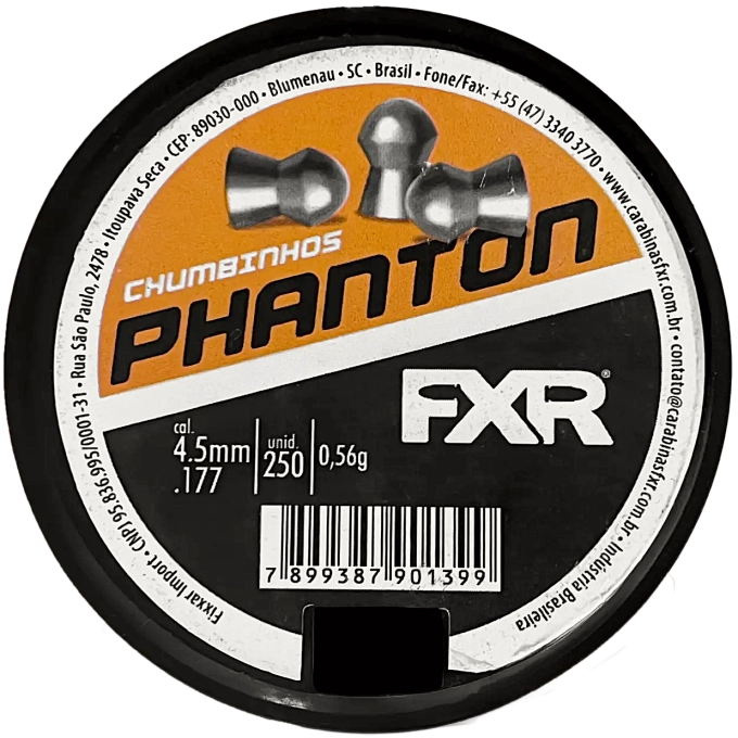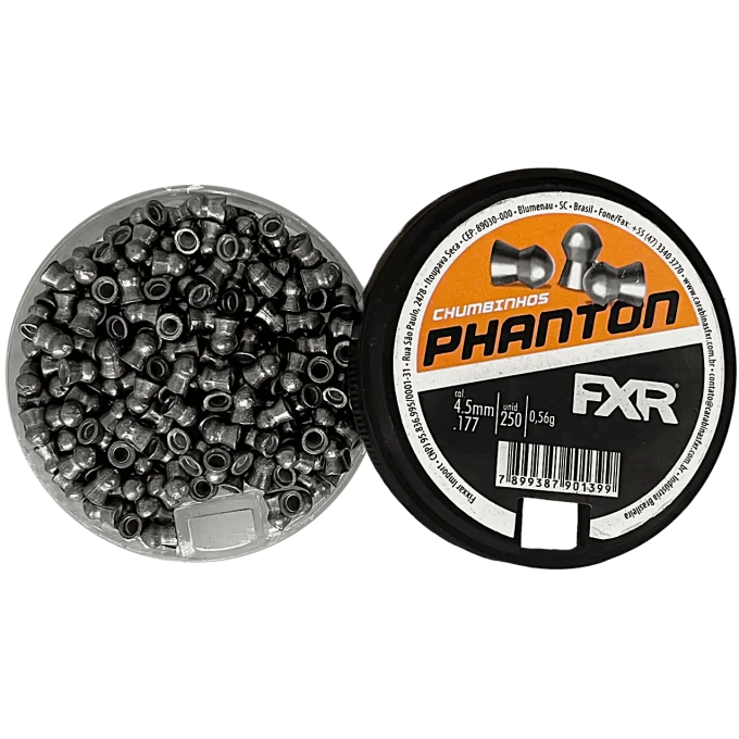 Chumbinho FXR Phanton, Foi Desenvolvido Para Quem Procura Uma Munição De Boa Qualidade E ComExcelente Custo Benefício. O Modelo Phanton É O Coringa Dos Chumbinhos FXR. Ele Possui Uma Cabeça Redonda E Foi Projetado Para Desempenhar Quase Todos Os Objetivos, Desde Tiro Informal, Tiro Em Papel, Tiro Em Madeira, Tiro Em Lata, etc.